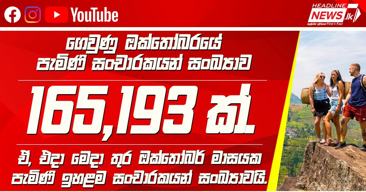 ගෙවුණු ඔක්තෝබරයේ පැමිණි සංචාරකයන් සංඛ්යාව 165,193 ක්.