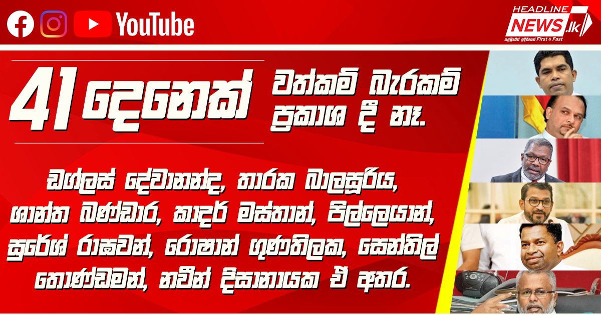 41 දෙනෙක් තවමත් වත්කම් බැරකම් ප්රකාශ ලබා දී නෑ. වත්කම් බැරකම් ප්රකාශ ලබා දිය යුතු බවට නියම
