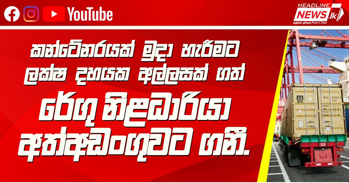 කන්ටේනරයක් මුදා හැරීමට ලක්ෂ දහයක අල්ලසක් ගත් රේගු නිළධාරියා අත්අඩංගුවට ගනී. ව්යාපාරික