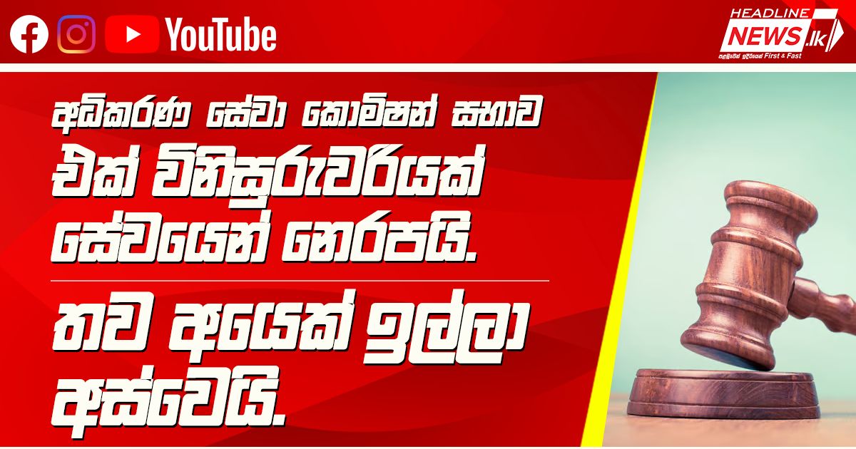 අධිකරණ සේවා කොමිෂන් සභාව; එක් විනිසුරුවරියක් සේවයෙන් නෙරපයි. තව අයෙක් ඉල්ලා අස්වෙයි.මාතර අ