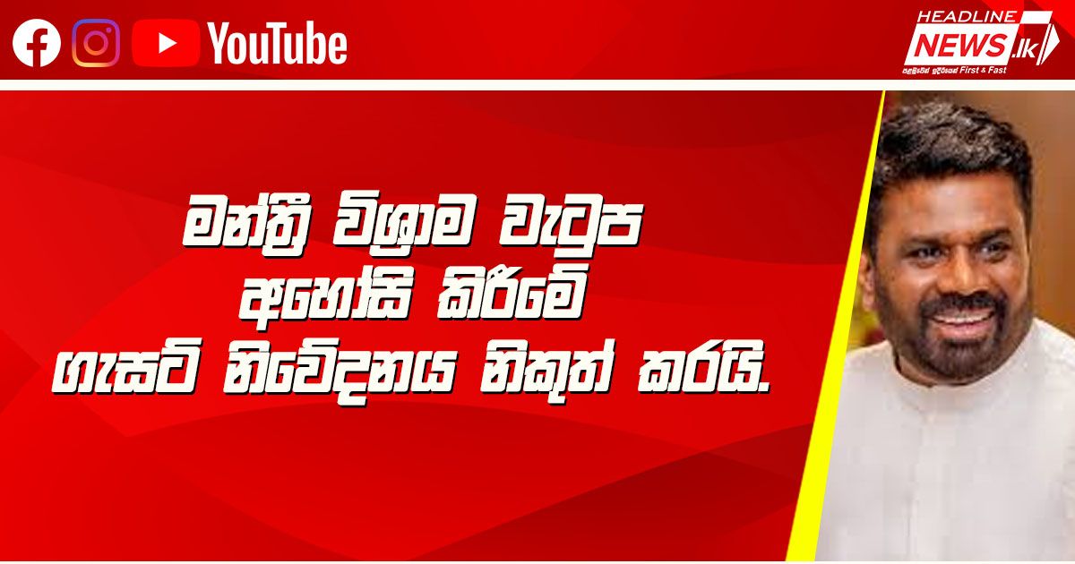 මන්ත්රී විශ්රාම වැටුප අහෝසි කිරීමේ ගැසට් නිවේදනය නිකුත් කරයි. පාර්ලිමේන්තු මන්ත්රීවරුන්