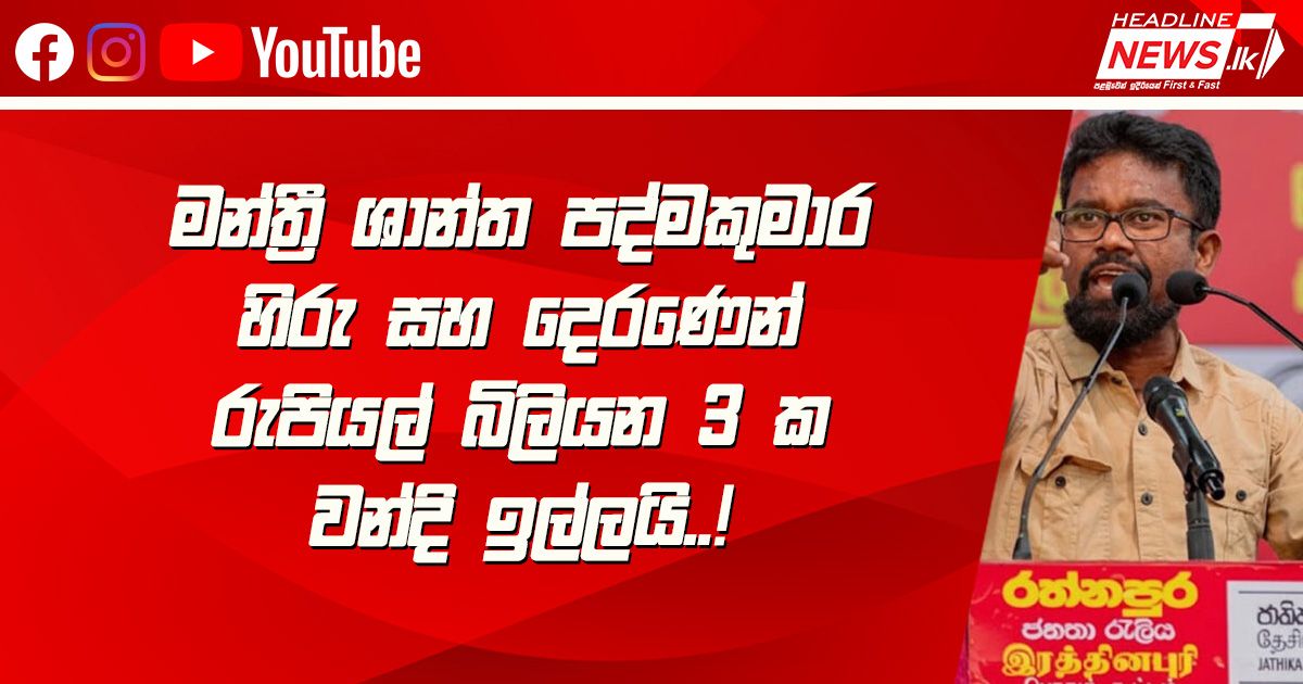 මන්ත්රී ශාන්ත පද්මකුමාරහිරු සහ දෙරණෙන් රුපියල් බිලිය 3 ක වන්දි ඉල්ලයි..! රත්නපුර දිස්ත්රික්
