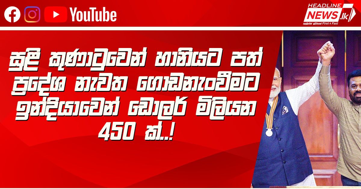 සුළි කුණාටුවෙන් හානියට පත් ප්රදේශ නැවත ගොඩනැංවීමට ඉන්දියාවෙන් ඩොලර් මිලියන 450 ක්..!දිත්වා සුළ